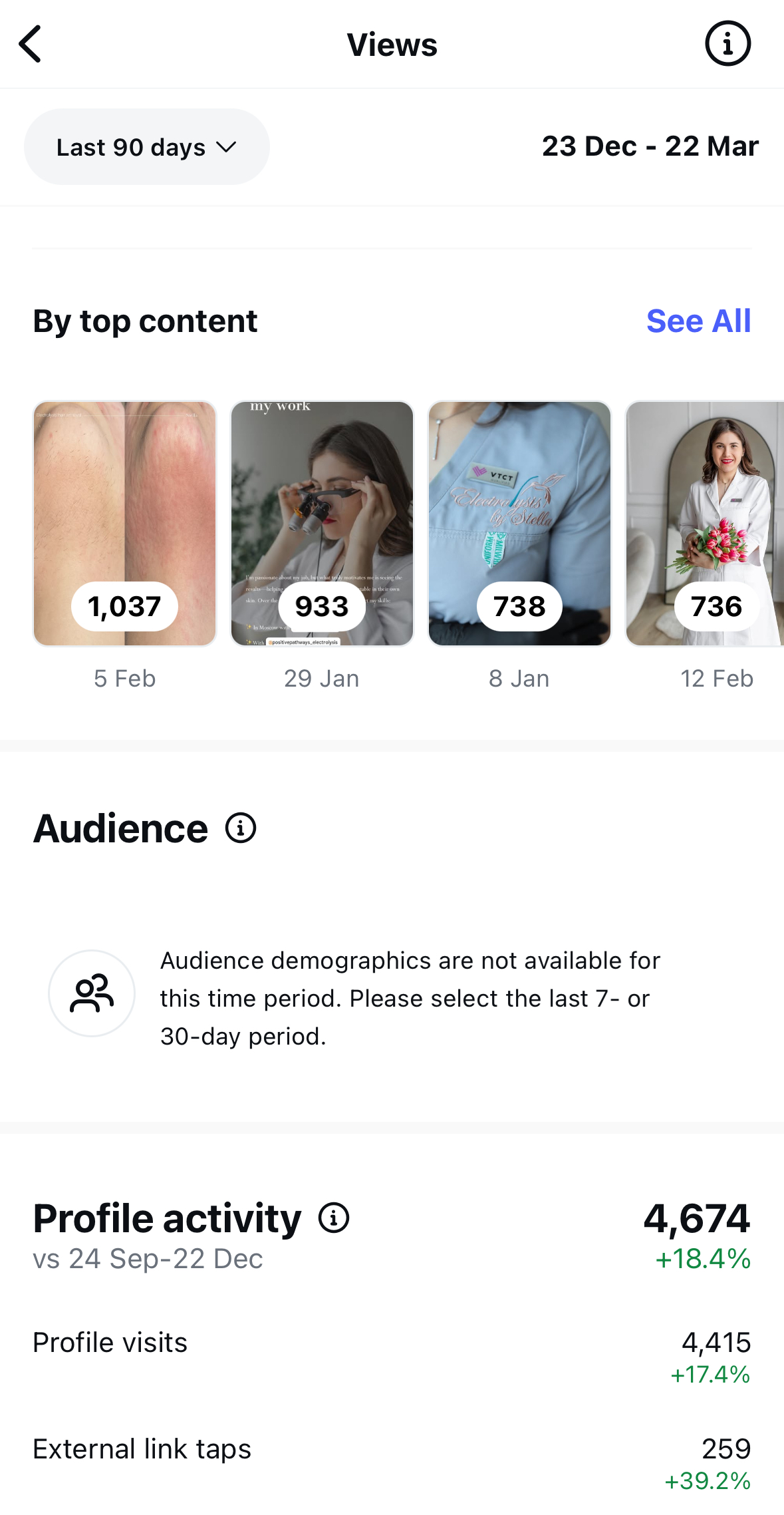 Supporting a specialist electroepilation studio with a clean, professional social media profile that communicates expertise.